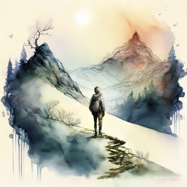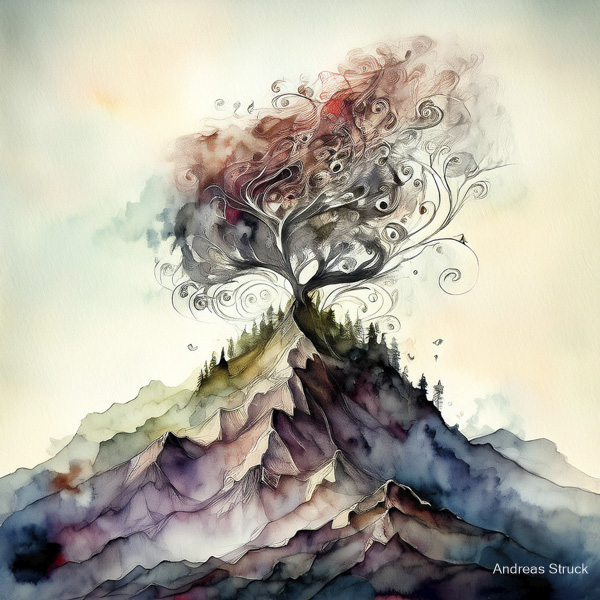 Texte aus dem Gedichtband "Stolpernde Worte über einen Berg voller Leben" und eigene Photoarbeiten interpretiert durch die KI Adobe Firefly.